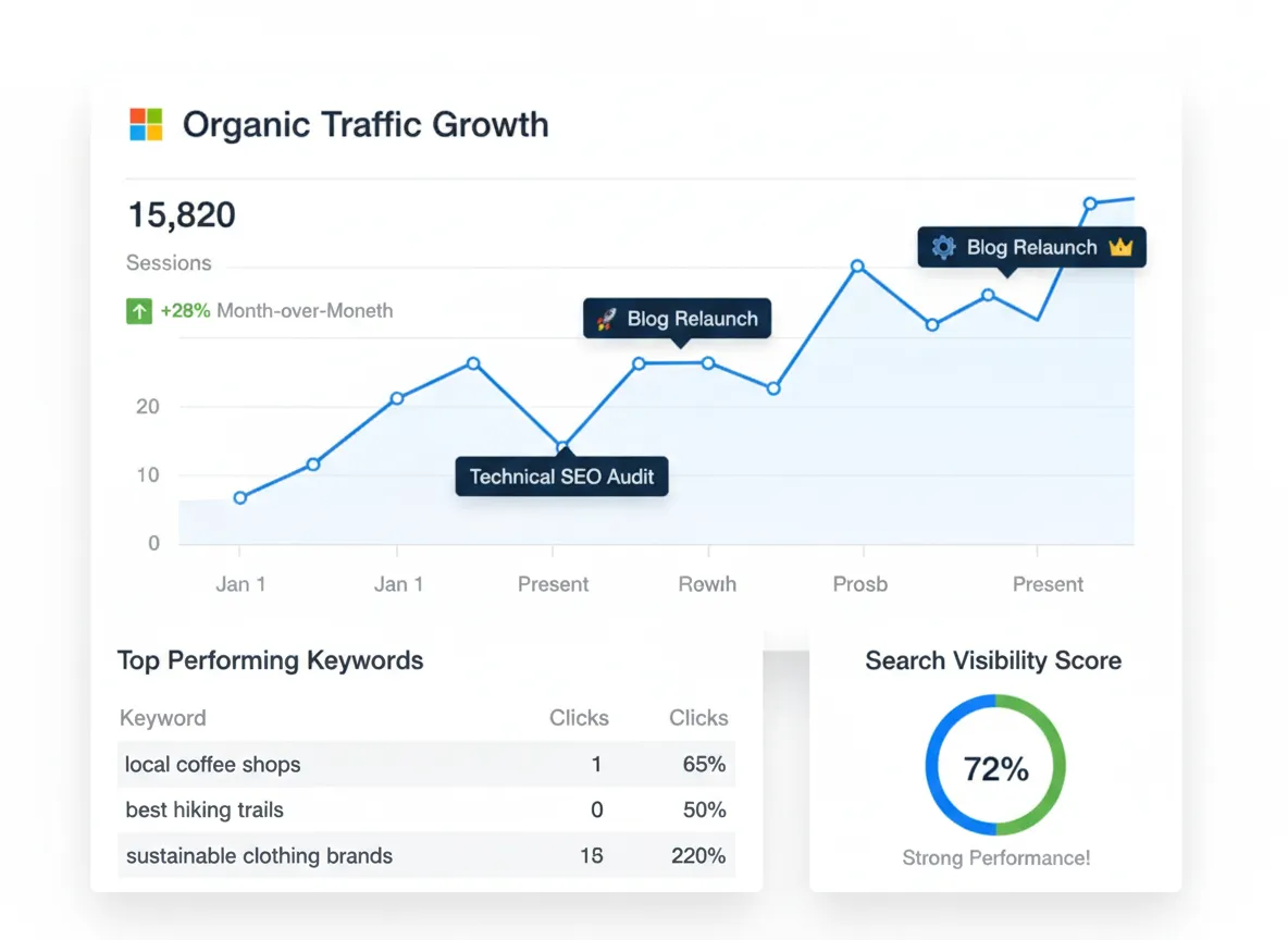 Why guess when you can know? Our proprietary SEO dashboard transforms complex data into a clear roadmap for growth. We track, analyze, and report on what matters, giving you the insights to make decisions that directly impact your bottom line.